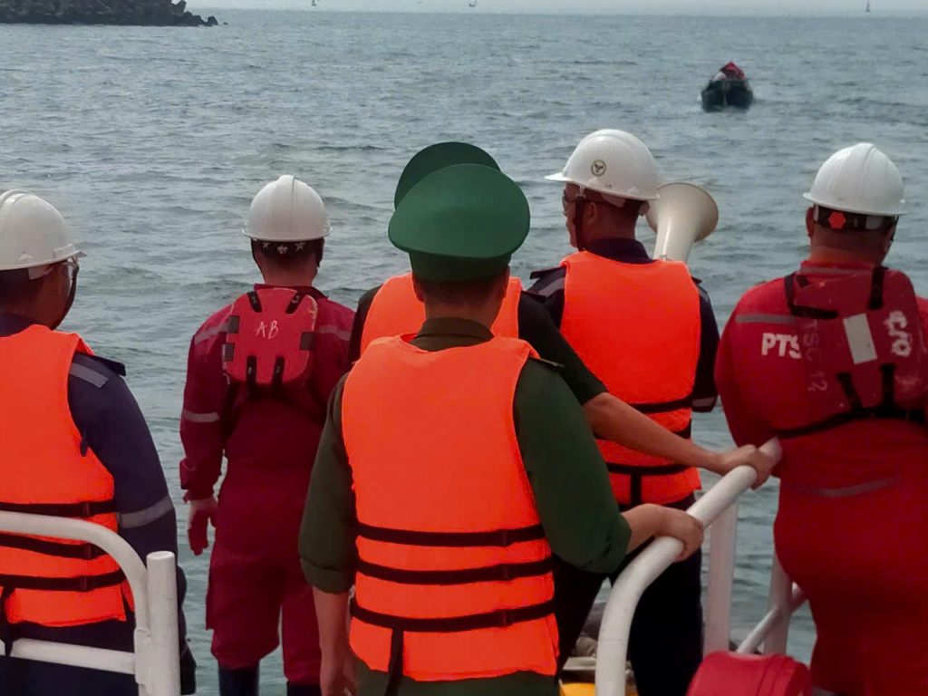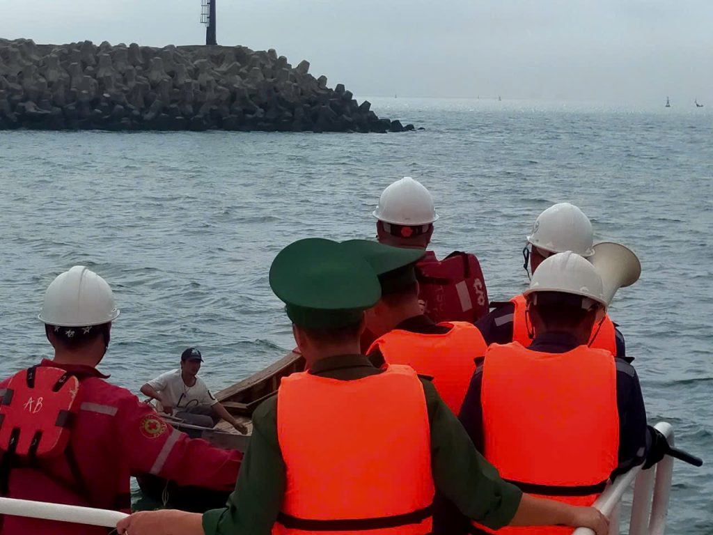 Lực lượng an ninh trên biển của nhà máy tiếp cận tuyên truyền và ngăn chặn tàu cá