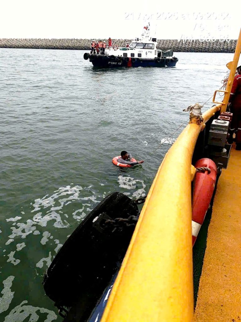 Ngư dân rơi xuống nước được tàu tuần tra lực lượng bảo vệ cứu vớt